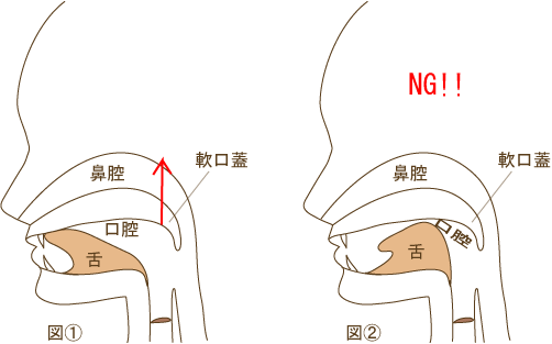 図②のように舌が塞ぐことのないようにします。響きを感じられなくなります。